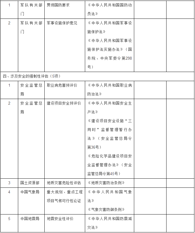 安全部門1項(xiàng):涉及國家安全事項(xiàng)的建設(shè)項(xiàng)目審批。