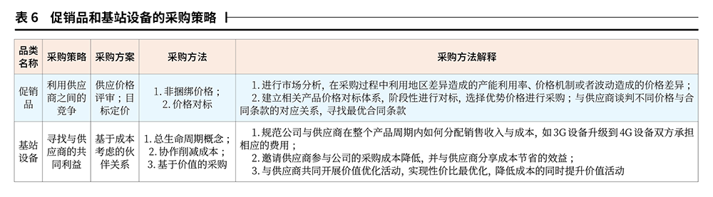 根據(jù)品類定位的結(jié)果制定促銷品和基站設(shè)備的采購(gòu)策略,如表6所示。