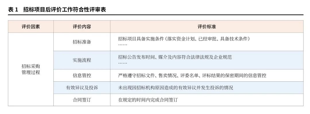由后評價專家組研究制定適合不同類型項目的評價指標模版,除通用的“符合性和完整性檢查”之外,還應建立覆蓋全面的指標池:包括對評價條款、招標效率、流程復盤、經(jīng)濟效益考核等“質(zhì)量性評審”指標,實現(xiàn)合規(guī)檢查與質(zhì)量提升相結(jié)合。在實施操作過程中,一方面結(jié)合項目類型選擇不同的評價模版,另一方面可以重點聚焦當前工作中存在的突出問題,動態(tài)調(diào)整重點關注的指標,確保后評價的實效性。